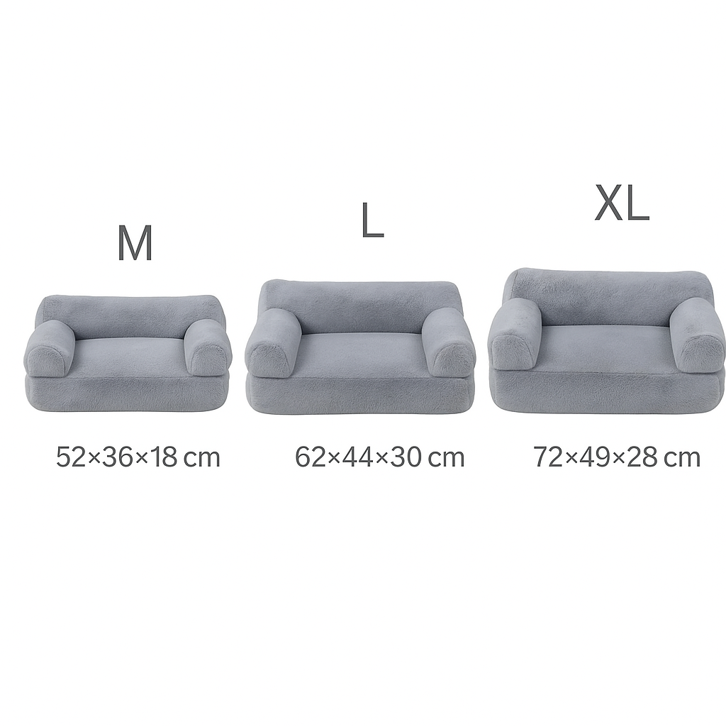 Suave, acogedora y con un diseño tipo sofá, esta cama ofrece el máximo confort para tu mascota. Fabricada con felpa de alta calidad, brinda una sensación cálida y envolvente, perfecta para descansar y dormir. Disponible en varios colores y tamaños para adaptarse a cada peludo.